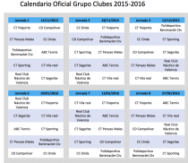 Ante la incorporacion del CLUB DE TENIS REQUENA, el calendario del grupo LIGA se ha visto modificado. Así pues, la primera jornada queda tal cual se ha disputado y el resto del calendario es totalmente nuevo.